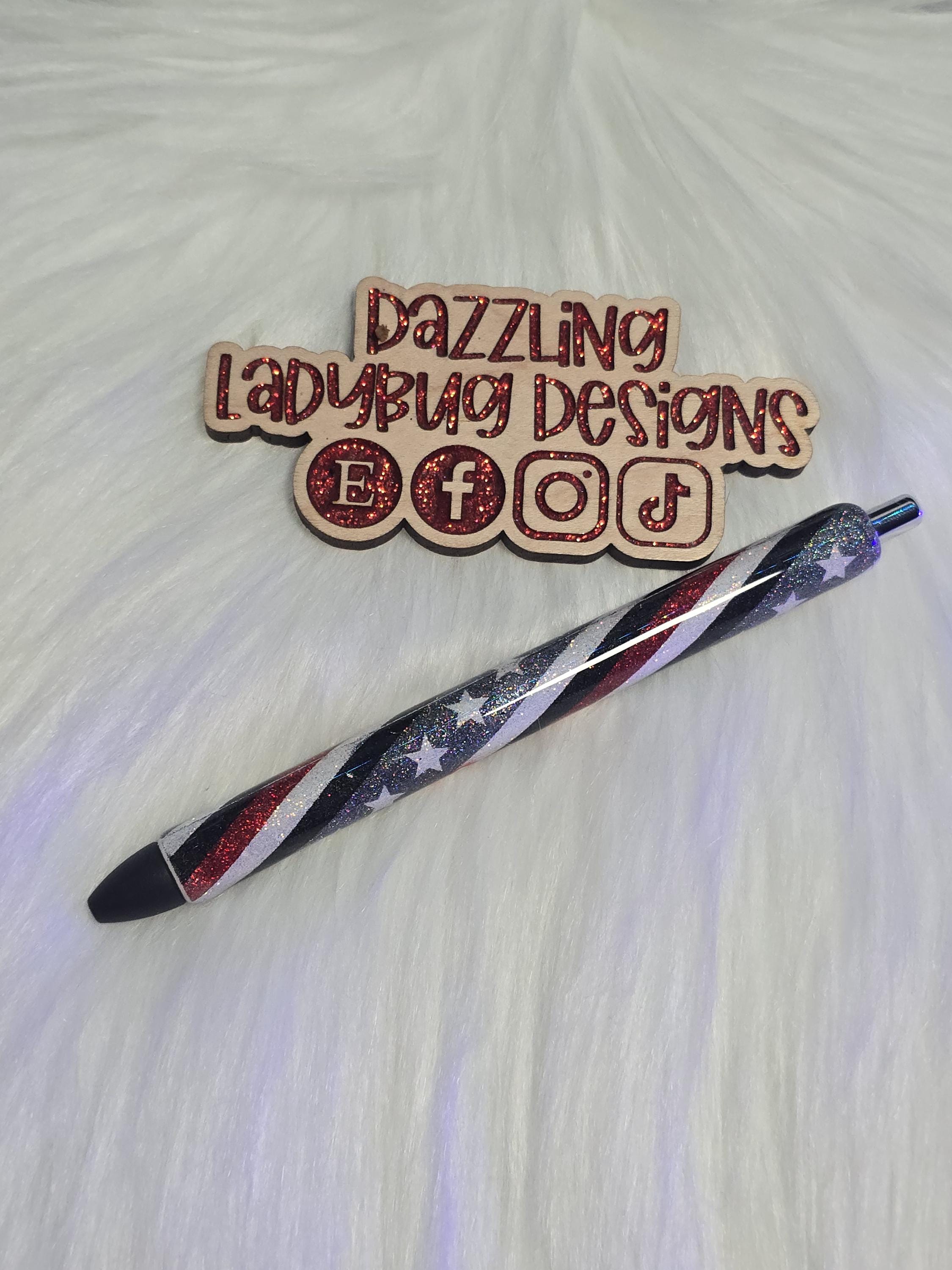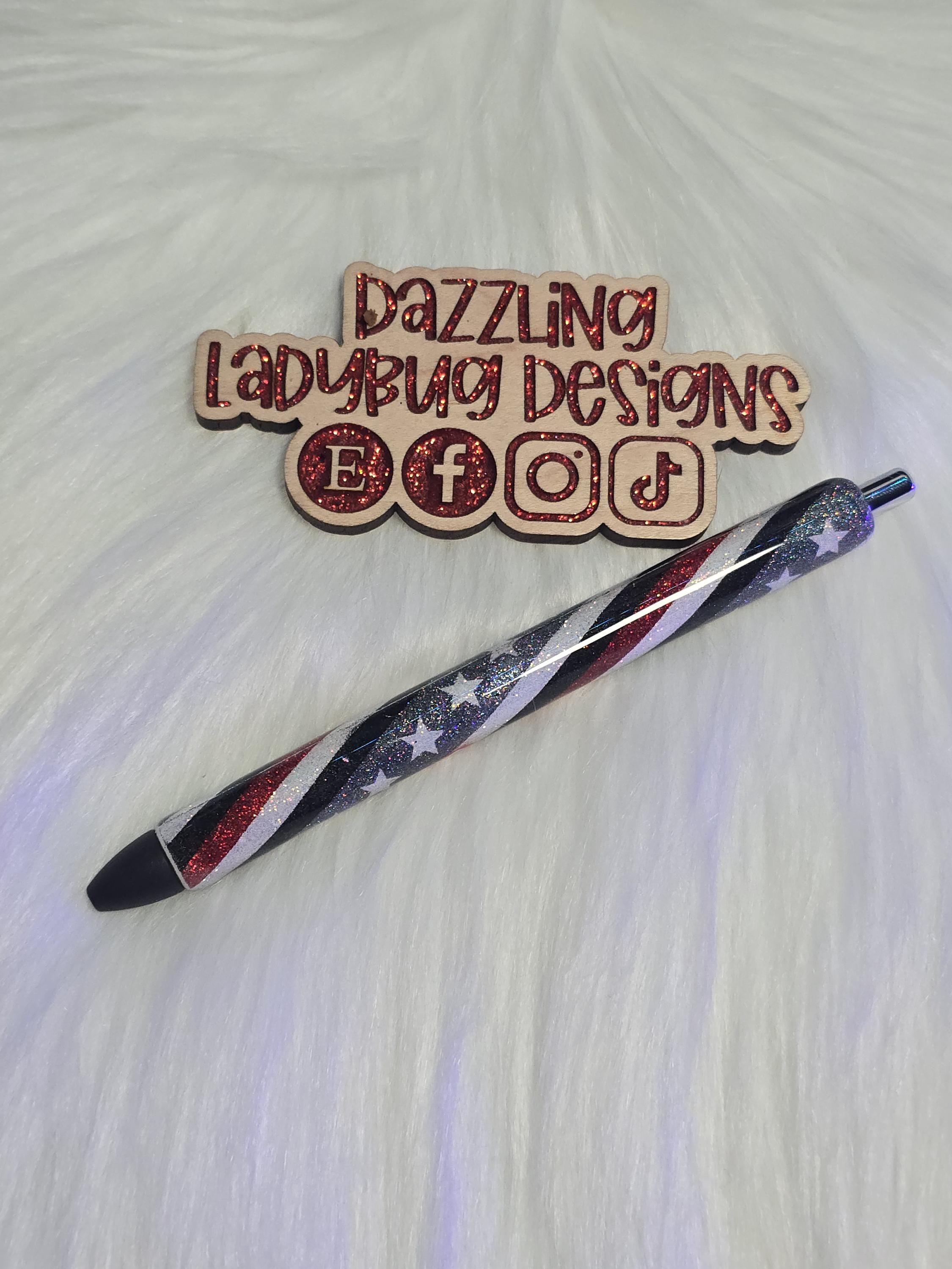 This is a glittered First Responder Flag gel pen. It comes on an Inkjoy Gel Pen.
