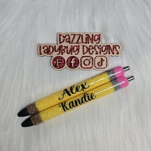 This pen can be customize with a name or saying. Please add in the personalization box what you would like it to say. Please see pictures for font and color options! *Please double check spelling as I will copy and paste!*
